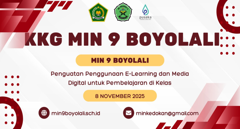 Pada hari Sabtu, 8 November 2025 KKG MIN 9 Boyolali mengadakan pertemuan rutin untuk merefresh dan menguatkan kembali media pembelajaran berbasis digital. Semua bapak/ibu dewan guru mengikuti KKG yang diadakan di ruang kelas 6A. Dibuka dengan sambutan dan pembinaan dari Kepala Madrasah Maryanto, S.Pd.I, M.Pd, beliau mengatakan bahwa para siswa sekarang berbeda dengan zaman dahulu. Siswa sekarang itu dinamis, jadi guru juga perlu mengikuti siswa zaman sekarang yang biasa disebut dengan generasi Alpha. Beliau juga berpesan untuk menyukseskan kurikulum dari Kementerian Agama, yaitu KBC (Kurikulum Berbasis Cinta). Kurikulum menekankan bahwa guru harus bisa memiliki pendekatan pendidikan yang menanamkan nilai kasih sayang, empati, dan kemanusiaan sebagai dasar dalam setiap aspek pembelajaran. Guru harus mampu sabar dalam menghadapi siswa-siswanya dan juga menjadi teladan bagi mereka, ujar beliau.